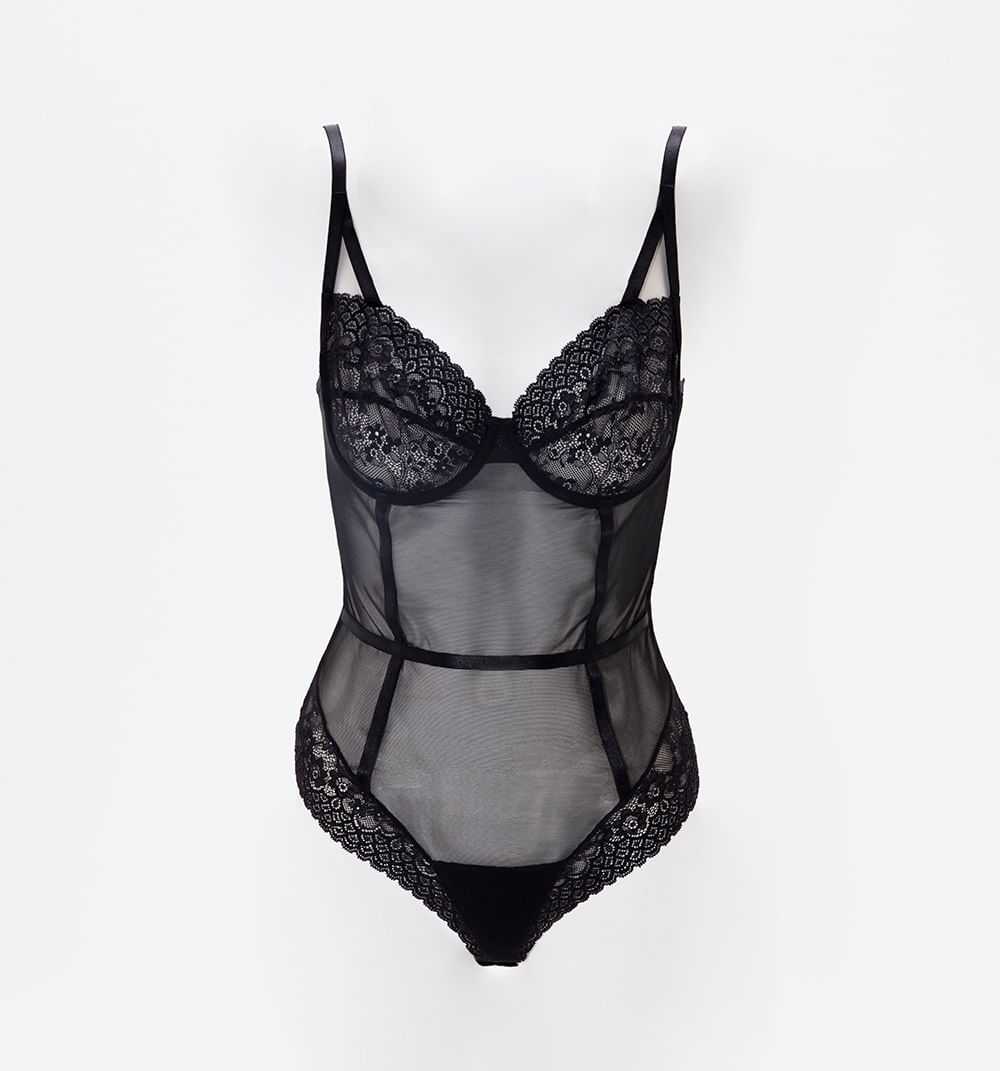 Body en mesh con copas en encaje