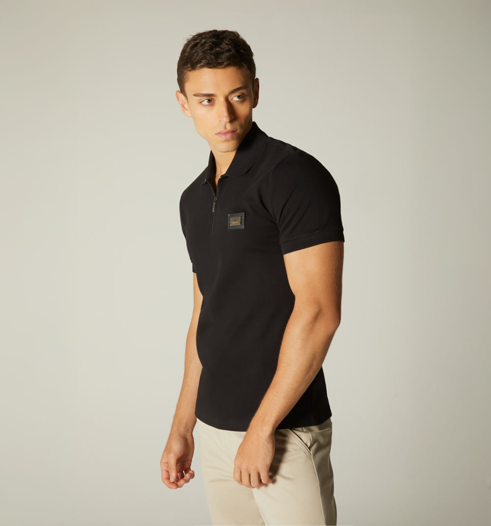 Polo para hombre slim con cierre y placa